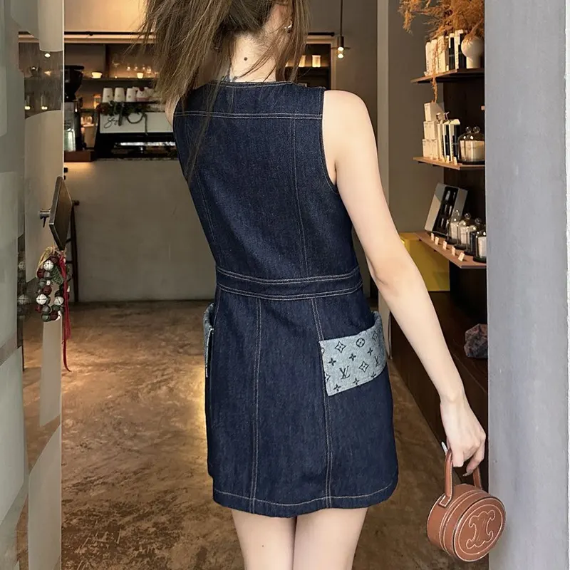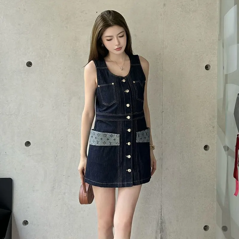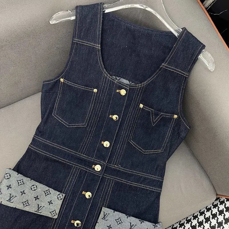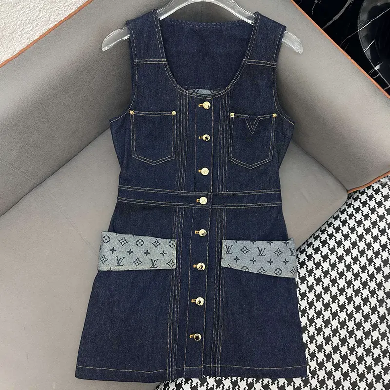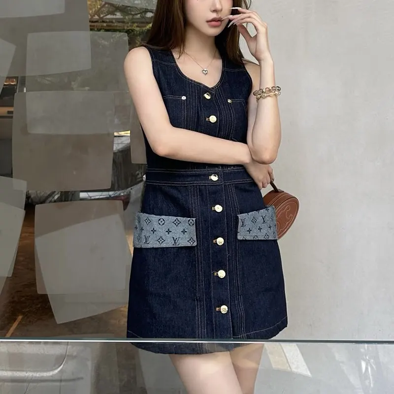 n級 おすすめルイヴィトン n級品 モノグラムデニムボタン フロントドレス 1AIBAW