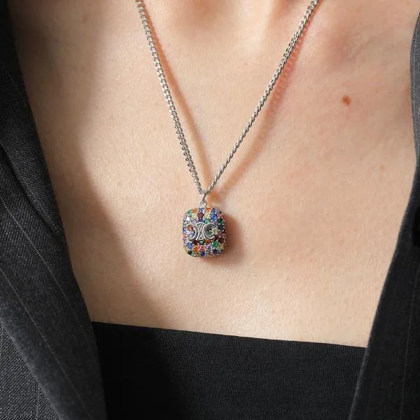 セリーヌ ネックレス 461OM6BCZ.14AG レディース アイスド トリオンフ ペンダント キュービックジルコニア チェーン アクセサリー Multicolor/Silver