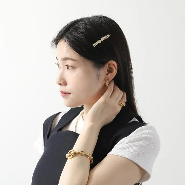 ミュウミュウ ヘアピン 偽物 エナメルメタル ロゴ 5IF146