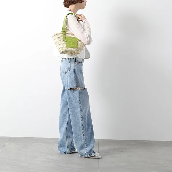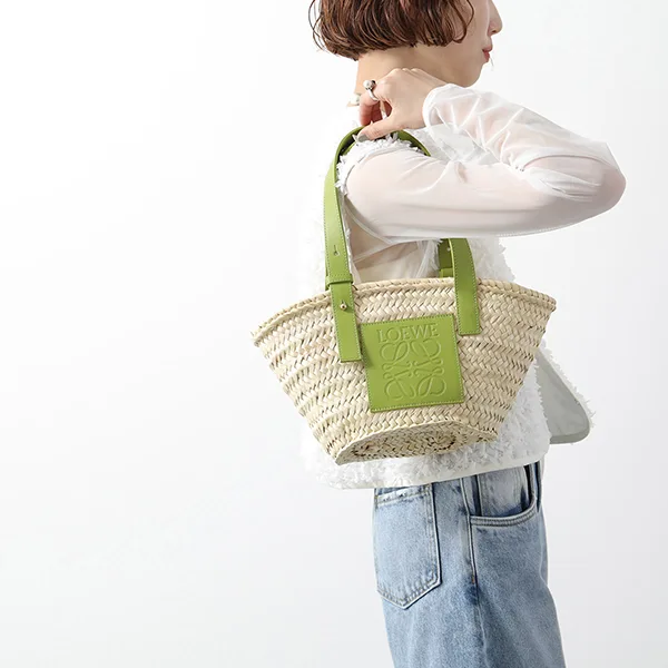 ロエベ カゴバッグ A223S93X28 A223S93X04 327.02.S93 ACBKS93X01 BASKET SMALL BAG レディース 鞄 ラフィア×レザー バスケット ハンドバッグ トート カラー3色