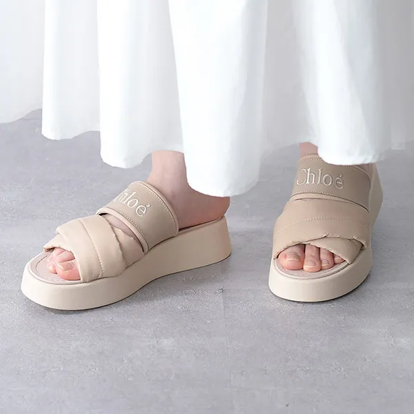 クロエ MILA レザー ナイロンスライドサンダル 偽物 CHC24S