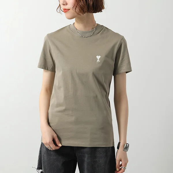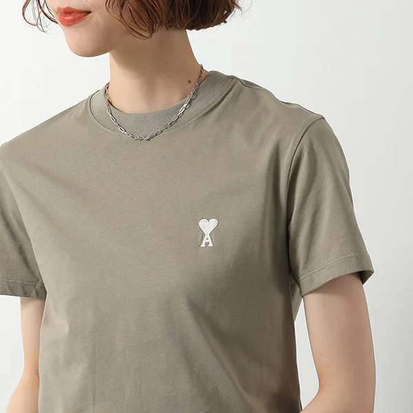 アミパリス Tシャツ Ami de Coeur HTS060.724 レディース 半袖 カットソー コットン クルーネック ハート ロゴ 刺繍 カラー2色