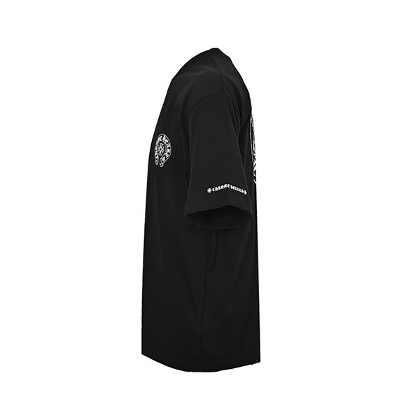 胸ポケットとバックにホースシューを、左袖に「CHROME HEARTS」をあしらったTシャツ