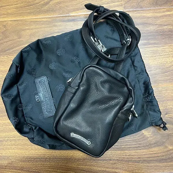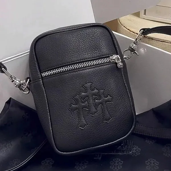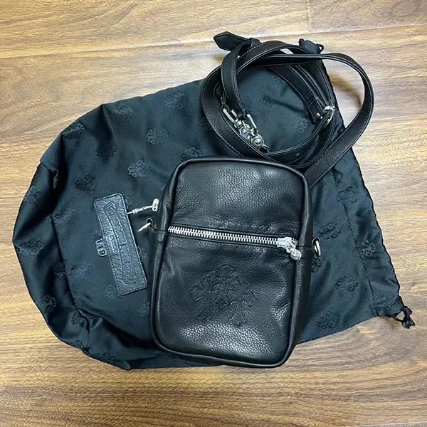 クロムハーツ ショルダーバッグ コピー レザー×925 ブラック×シルバー TAKA セメタリークロスパッチ Kuv40059