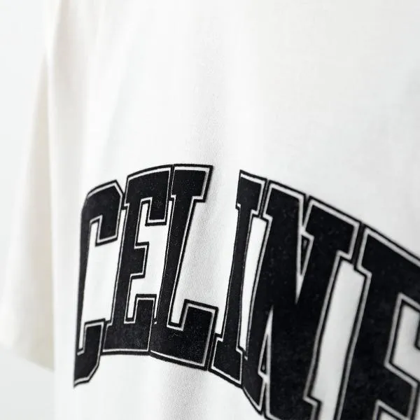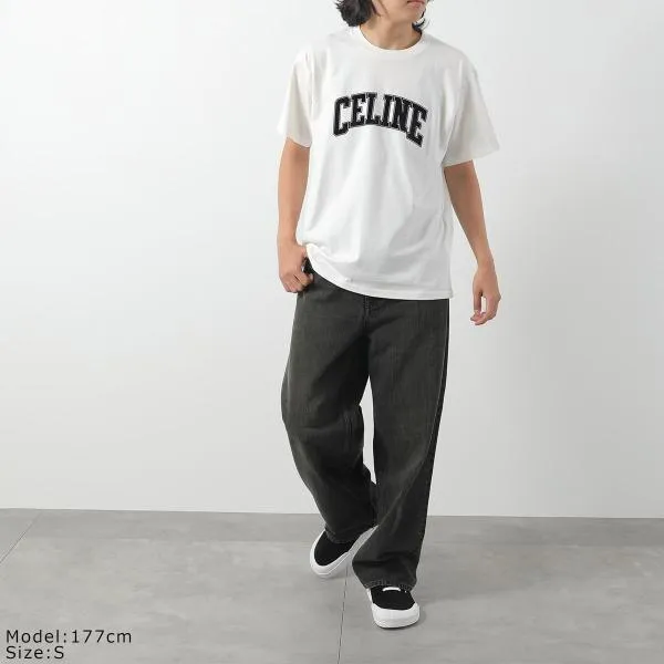 セリーヌ Tシャツ RX0AY671Q.01OB メンズ ルーズ ロゴT コットン 半袖 カットソー フロッキープリント クルーネック オフホワイト