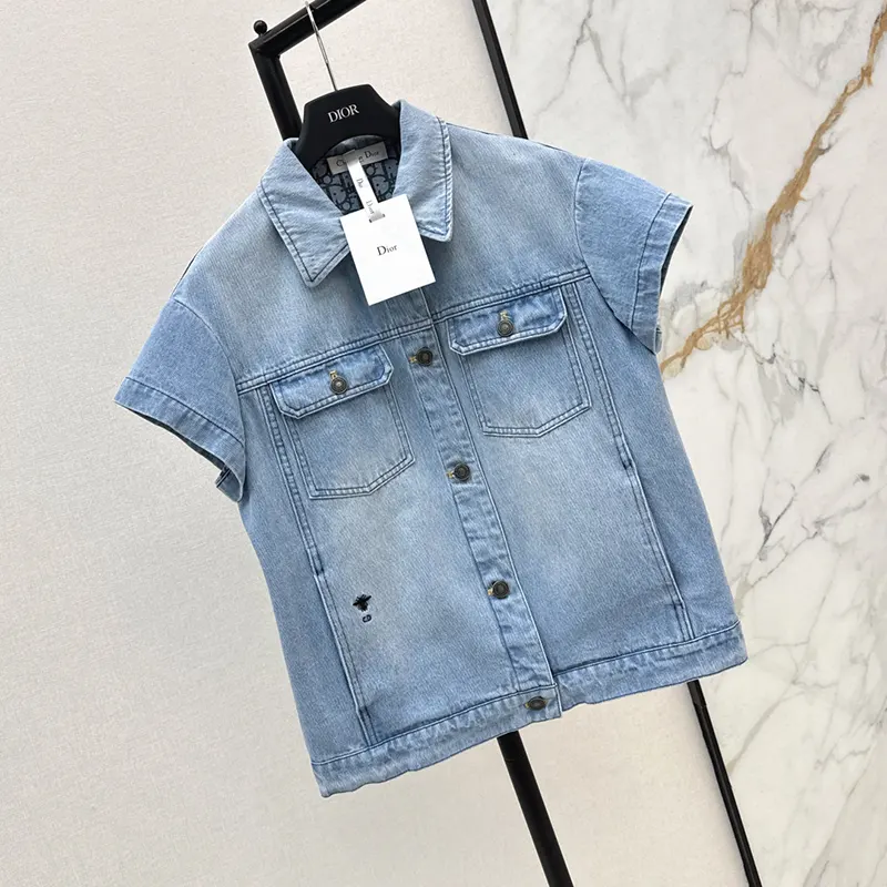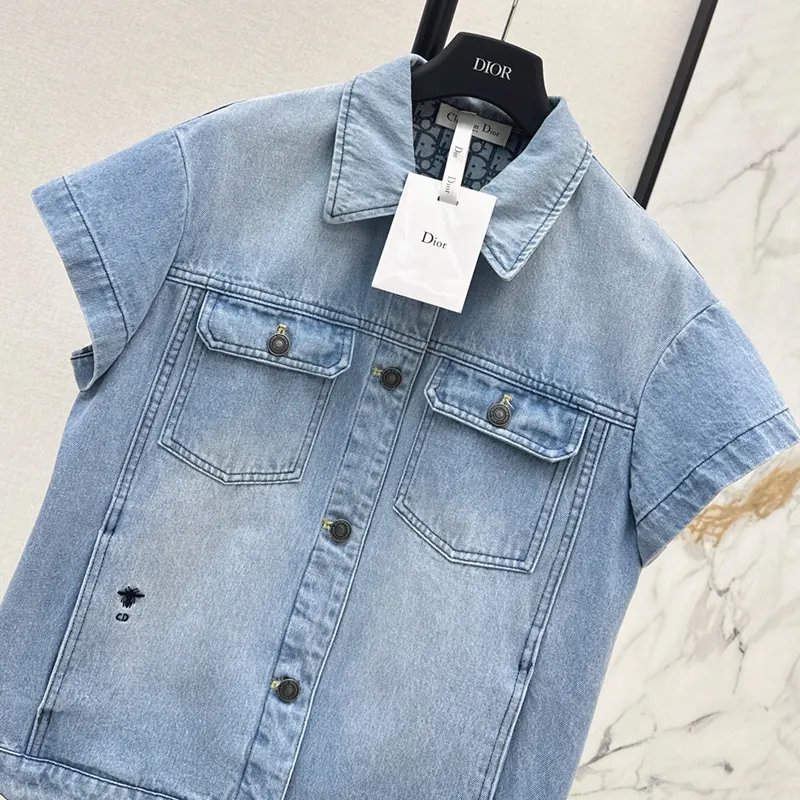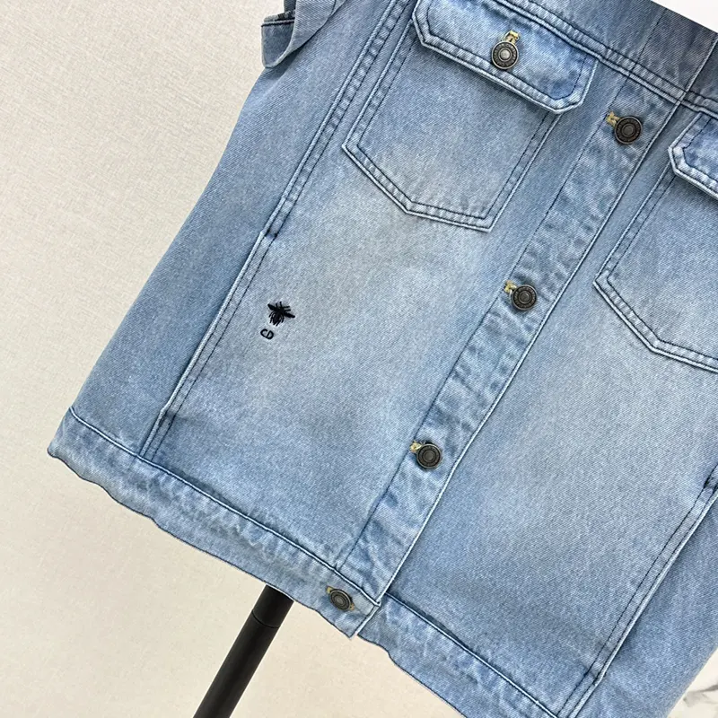 プレゼント最適ディオール BEE刺繍 デニム ジャケット 无袖 レプリカ deh95775