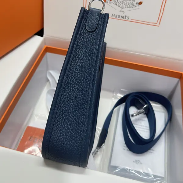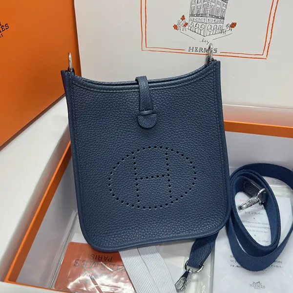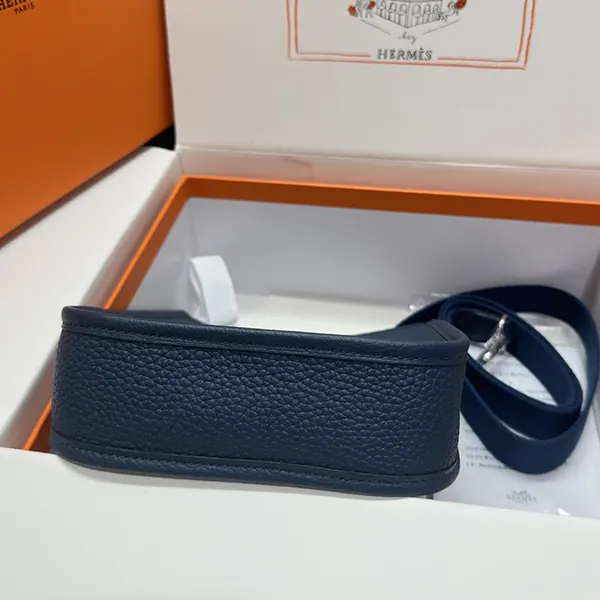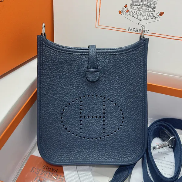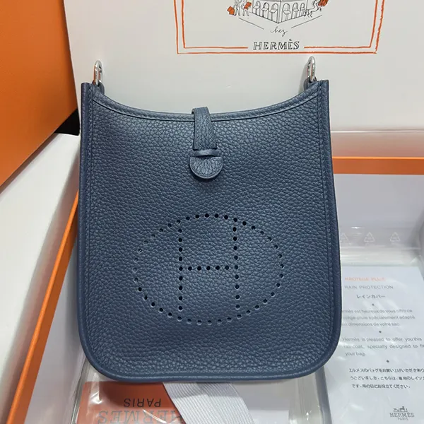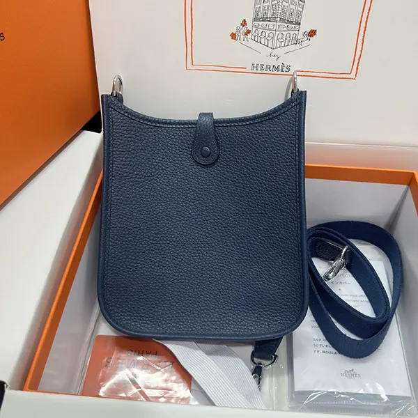 エルメス ミニエヴリン ブルードプリュス シルバー金具寸法: 長さ 16 x 高さ 20 x 奥行き 5.5 cm