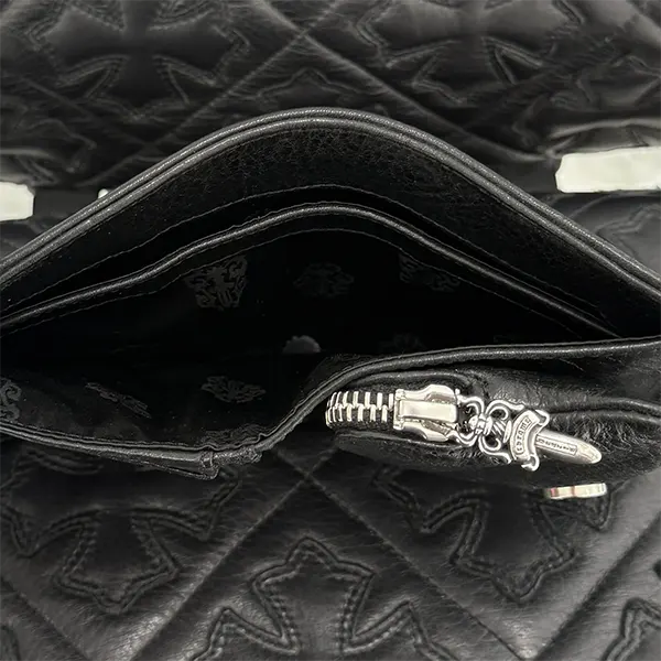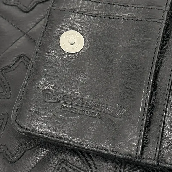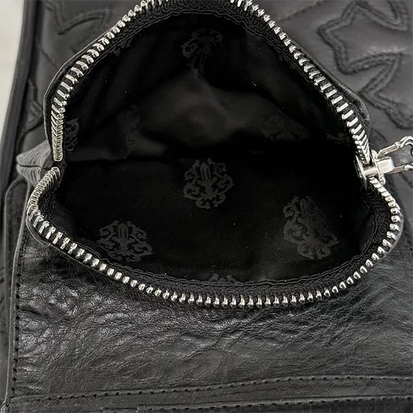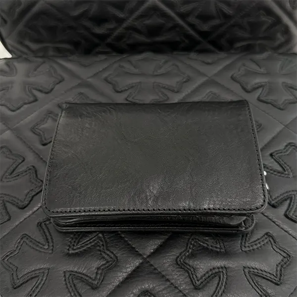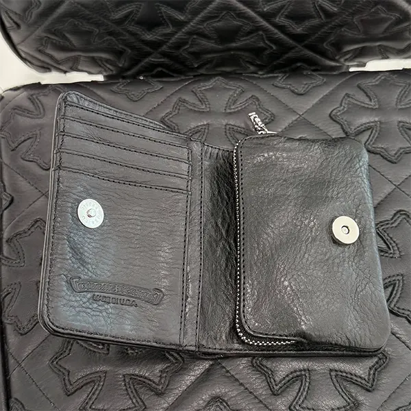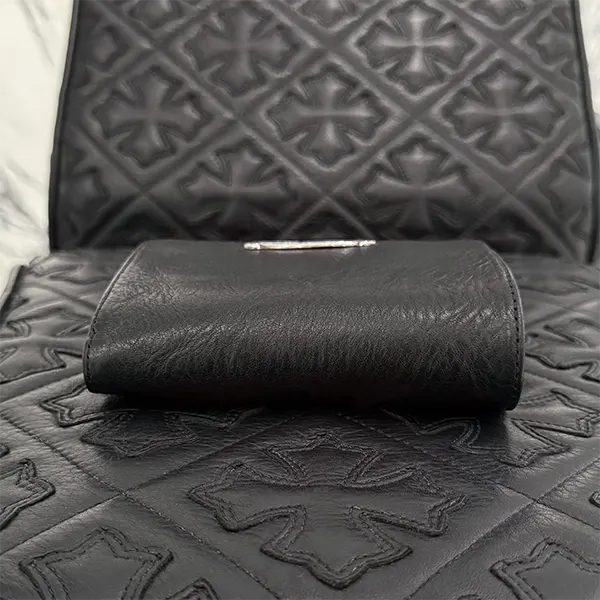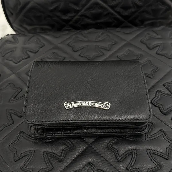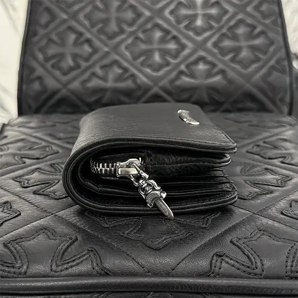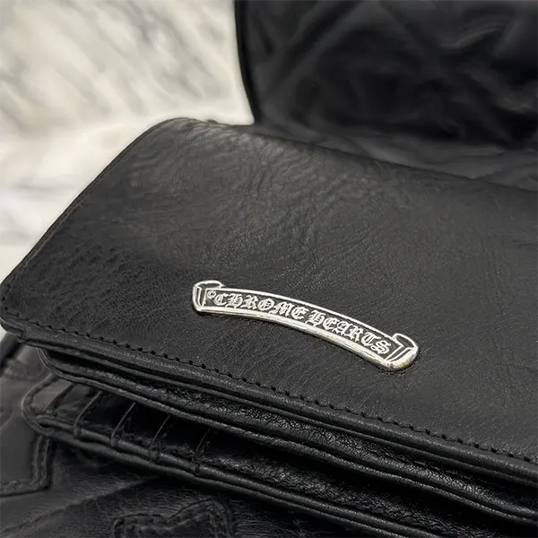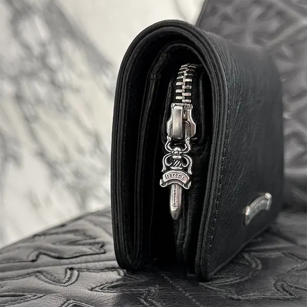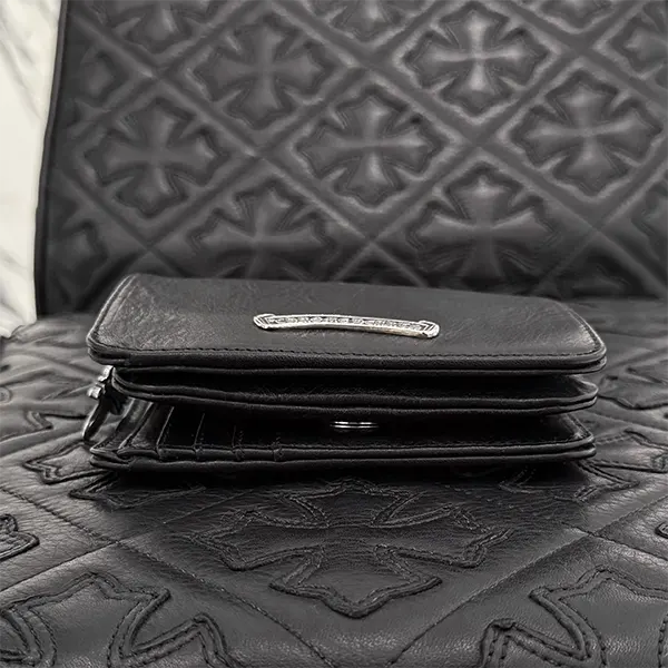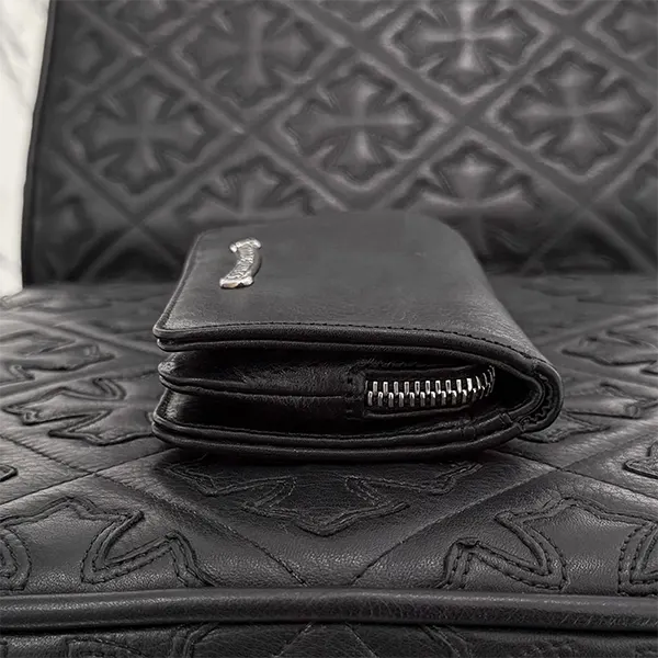 クロムハーツ ジョーイ 偽物スクロールウォレット 二つ折り財布 レザーウォレット ダガージップ ブラック kue92579