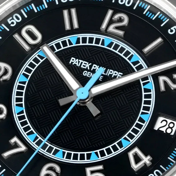 文字盤:エボニーブラック、中央に《カーボン》エンボス・パターン、ホワイト夜光付ゴールド植字数字