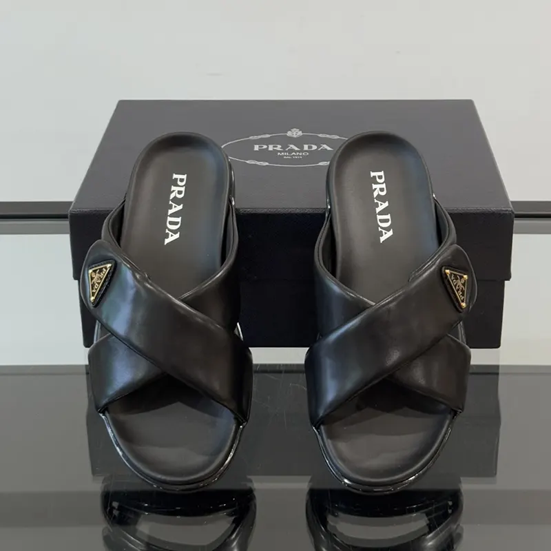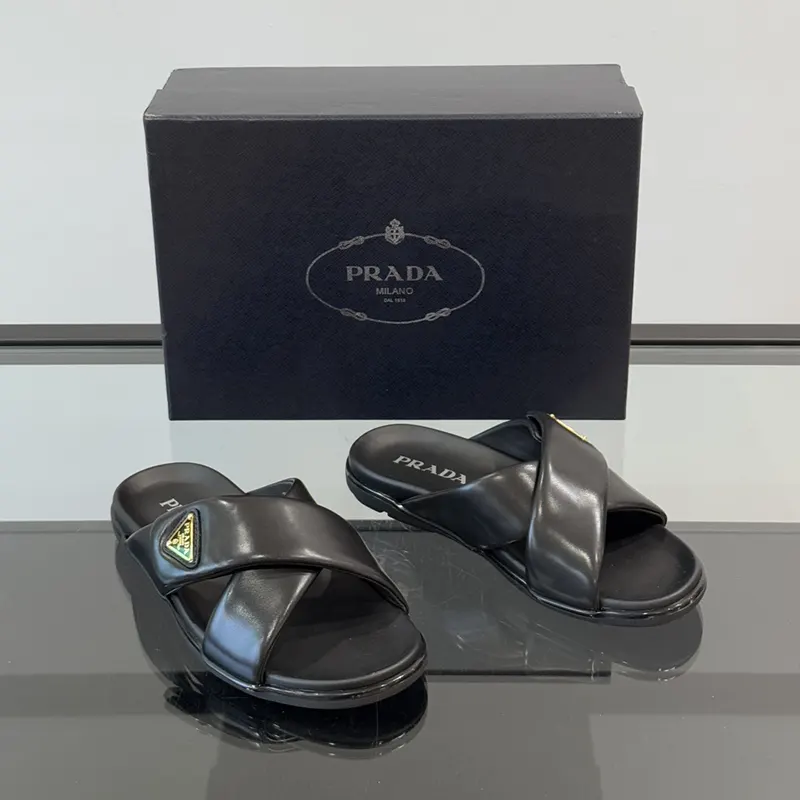 追跡付プラダ レプリカ ナッパレザースライド サンダル pug21302