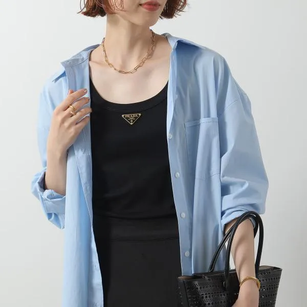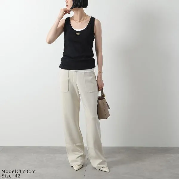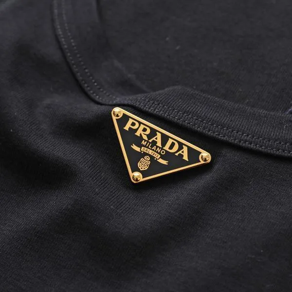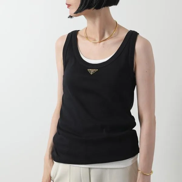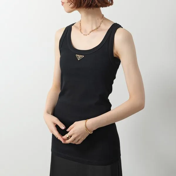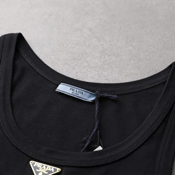 プラダ ノースリーブ 39546X 10Z0 レディース タンクトップ リブニット コットンジャージー トライアングルロゴ スリムフィット F0002/NERO