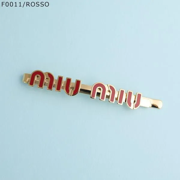 ミュウミュウ ヘアピン 偽物 エナメルメタル ロゴ 5IF146
