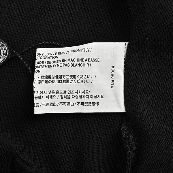胸ポケットとバックにホースシューを、左袖に「CHROME HEARTS」をあしらったTシャツ