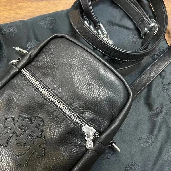クロムハーツ ショルダーバッグ コピー レザー×925 ブラック×シルバー TAKA セメタリークロスパッチ Kuv40059