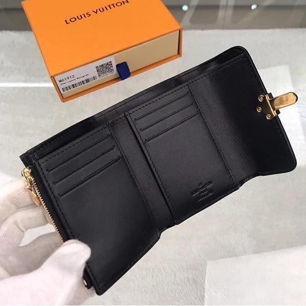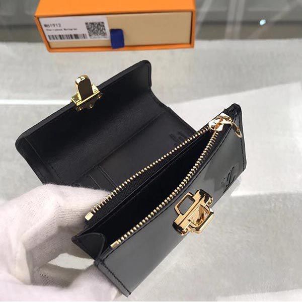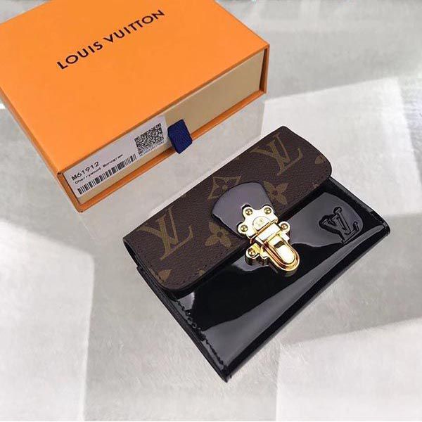 コンパクトなチェリーウッド ウォレットは、ルイ・ヴィトンのトランクの伝統的なロックにインスパイアされた珍しい留め具と、アイコニックなモノグラム・キャンバスとスムースなパテント・カーフスキンのコンビネーションが際立っています。エレガントでコンパクトなデザインは、クレジット カード用の多数のポケットとスロットを備えたモデルの実用性と効率性を損なうことはありません。
