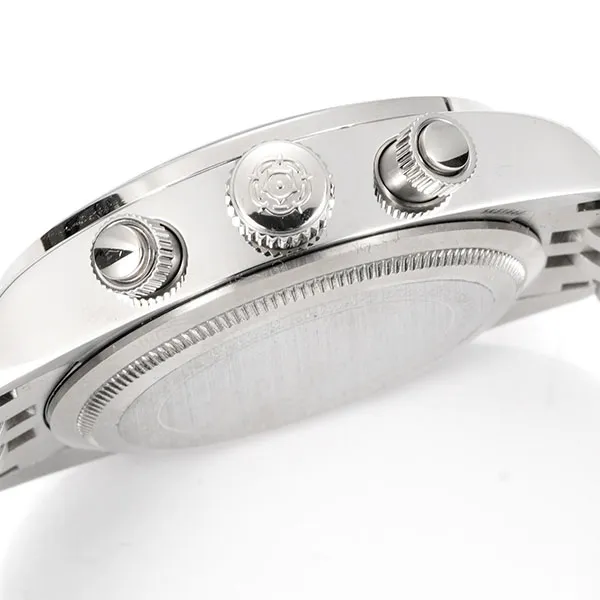 ステンレススチール製固定ベゼル、マットブラックのアルマイト加工ディスク、シルバーカラーのマーカー付きタキメーター