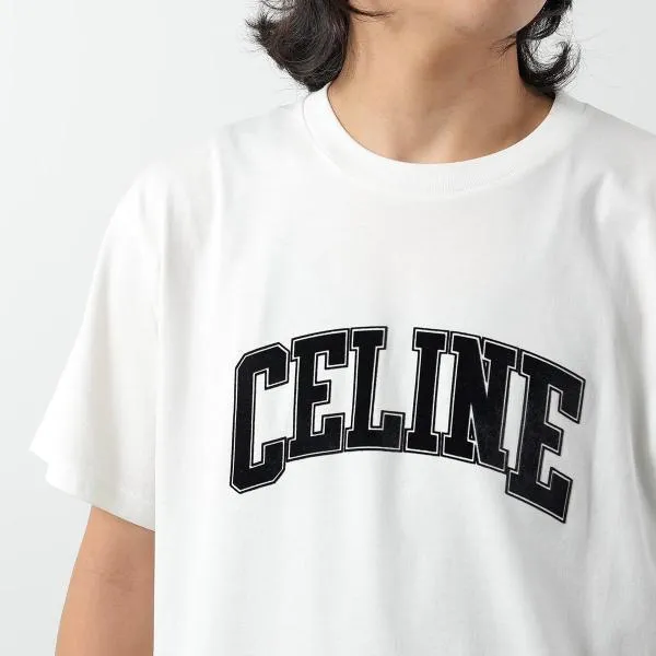 セリーヌ Tシャツ RX0AY671Q.01OB メンズ ルーズ ロゴT コットン 半袖 カットソー フロッキープリント クルーネック オフホワイト