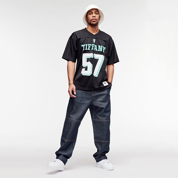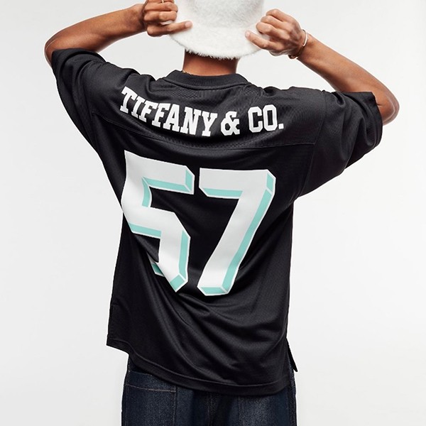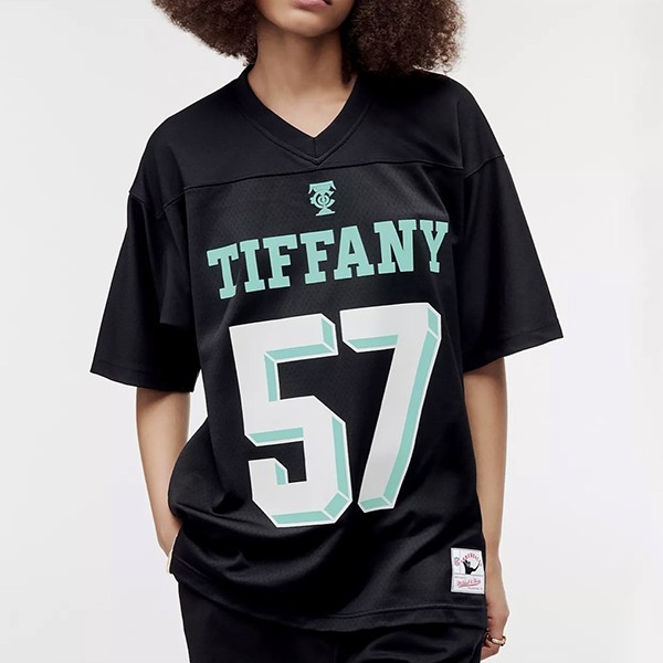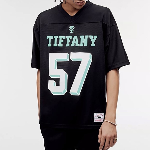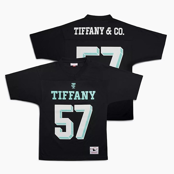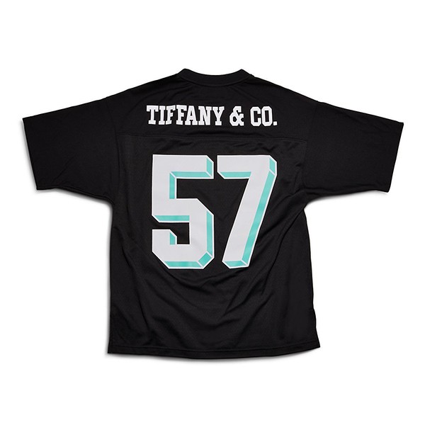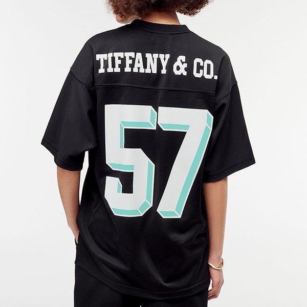 ブラックをベースに、胸元と背面に施された“ティファニーブルー”のロゴとナンバリングが存在感を放ちます。ナンバー「57」は、ニューヨーク五番街57丁目にあるティファニー本店と、第57回NFLスーパーボウルの開催を記念した特別な意味を持っています。 -