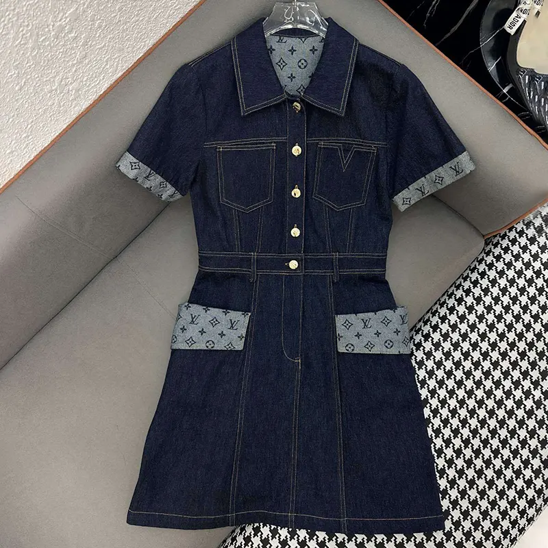 n級 おすすめルイヴィトン 偽物 モノグラムデニムボタン フロントドレス vuh09625
